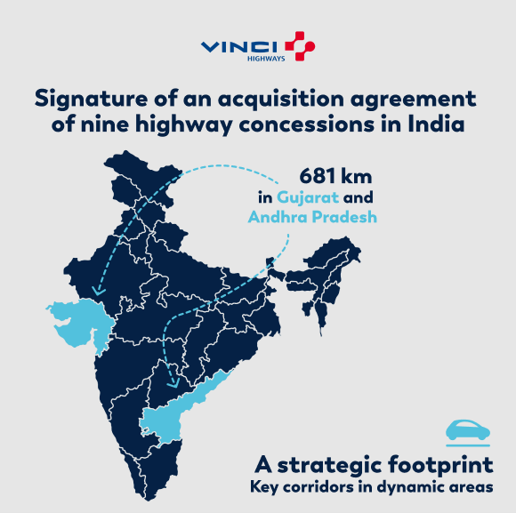 Find all the details in VINCI Group’s press release: VINCI signs an agreement with Macquarie Asset Management for the acquisition of nine highway concessions in India - VINCI